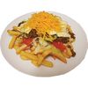 hasábburgonya ágyon, friss saláta, marharagu, 2 féle sajt